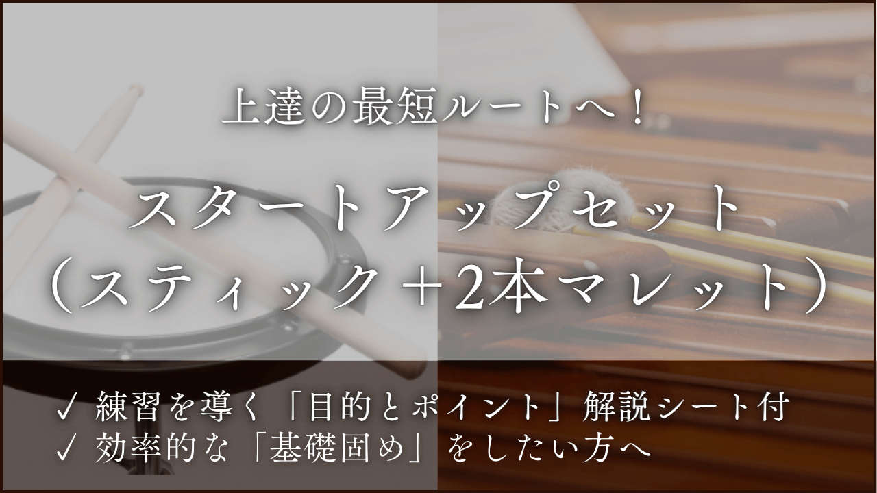 ご好評いただいている「スティック 基礎練習」と「鍵盤打楽器 2本マレット 基礎練習」を、より多くの方に取り組んでほしい気持ちで、「スタートアップセット」として販売します!